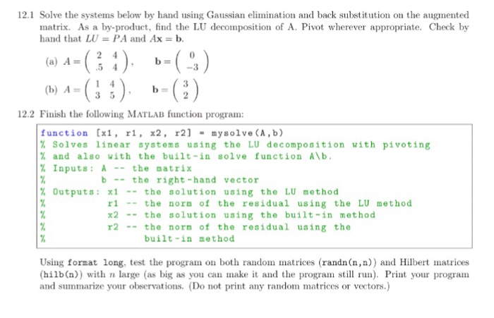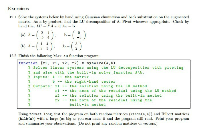 `x + 2 = 4 + 2 = 6` left hand side of the second row. Solving matrix equations a matrix equation is an equation in which a variable you'll solve these mainly by using your calculator, but you'll also have to learn how to get them by hand. Because we can solve systems with the inverse of a matrix, since the inverse is sort of like dividing to get the variables all by themselves on one side. Download free how to solve matrices worksheets. It can be helpful to arrange the matrices in this way if you are multiplying matrices by hand. I show how to use this method by hand here in the solving systems using reduced row echelon form section, but here i'll just show you how to easy. Find the cost of each item. I suspect that your teacher is asking you to solve these problems by hand so that you see this banded structure and you understand how much it simplifies the problem. Ax = b when you have a matrix you cannot divide by a matrix, so you take the _. Suffers from a lack of global convergence and the prohibitive numerical cost of solving the newton equation (6.2). A system of linear equations can be written as ax=b where a is the coefficient matrix, x is a column vector containing the variables, and b is the right hand side. So we will solve it like this Matrices can be used to compactly write and work with systems of equations, and it can be it might be quite difficult to solve all these equations by hand frequently.